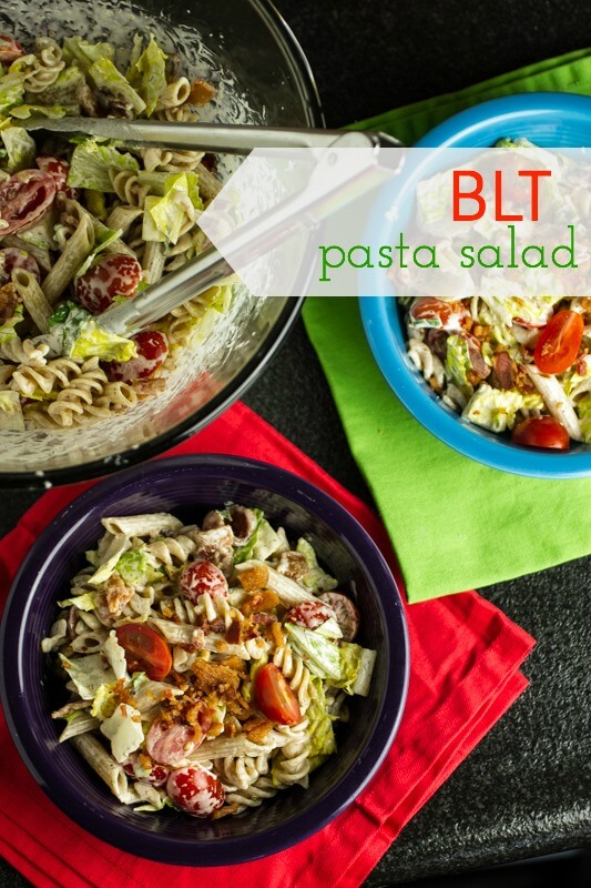 BLT pasta salad is a BLT minus the bread – bacon, lettuce, tomato, and creamy dressing tossed with perfectly cooked pasta!
