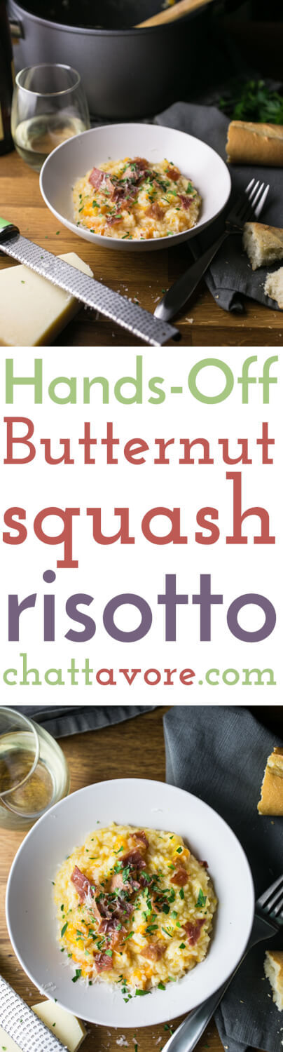 This butternut squash risotto is homey, simple, and delicious. Unlike most risottos, it doesn't require tons of stirring, so you can get things done while it cooks! | recipe from Chattavore.com