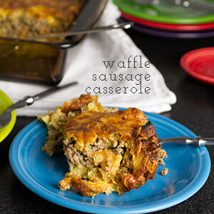 So if you need something to serve at your next brunch or family holiday breakfast, or really whenever, give this sausage and waffle casserole a go!